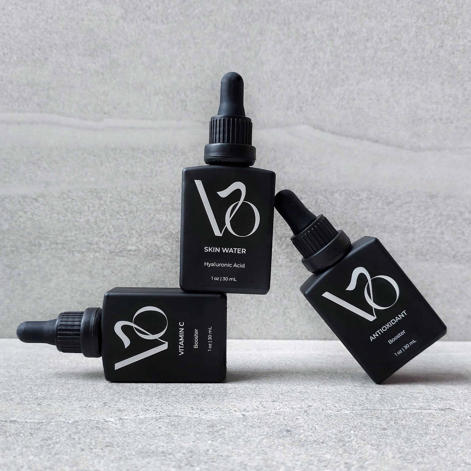 For best results, use the Anti-Aging Set daily. The Skin Water Serum and Antioxidant Booster can be used both morning and night, while the Vitamin C Serum should be applied in the morning, followed by SPF for protection throughout the day.